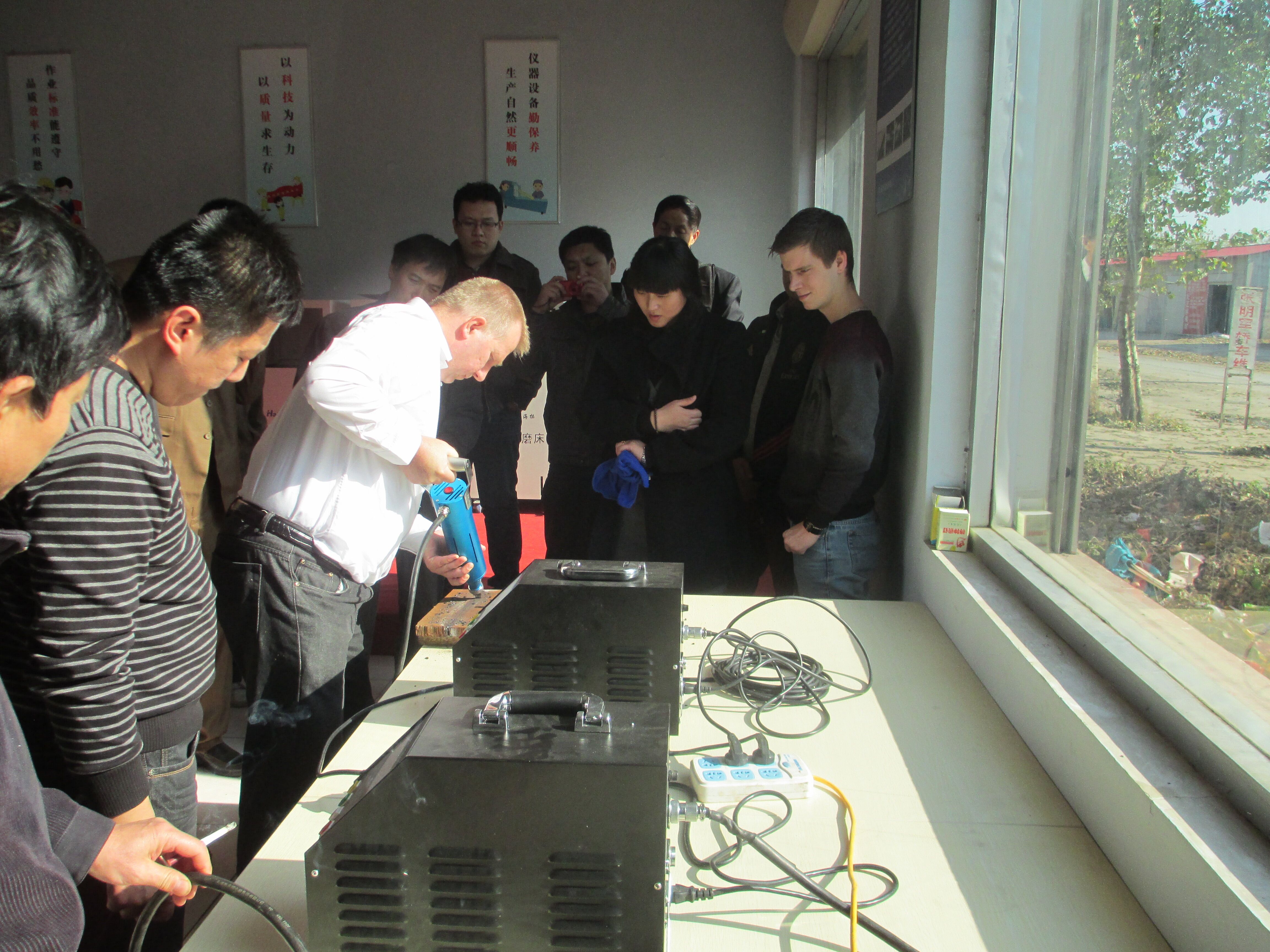 美顺带领客户试验超声冲击枪